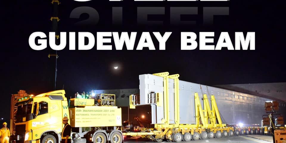งานขนย้าย Steel Guide Way Beam ยาว 65m รถไฟฟ้าสายสีเหลือง