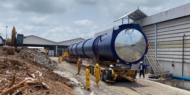 Cargo : Autoclave ,dimension L37.8 x W3.35 x H1.4 mtr. From LCB port to Siam Fibre Nongkae (Saraburi) , equipments hydraulic trailers with TurnTable equipment. #autoclave #transport