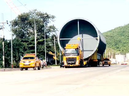 Cargo : Autoclave ,dimension L37.8 x W3.35 x H1.4 mtr. From LCB port to Siam Fibre Nongkae (Saraburi) , equipments hydraulic trailers with TurnTable equipment. #autoclave #transport